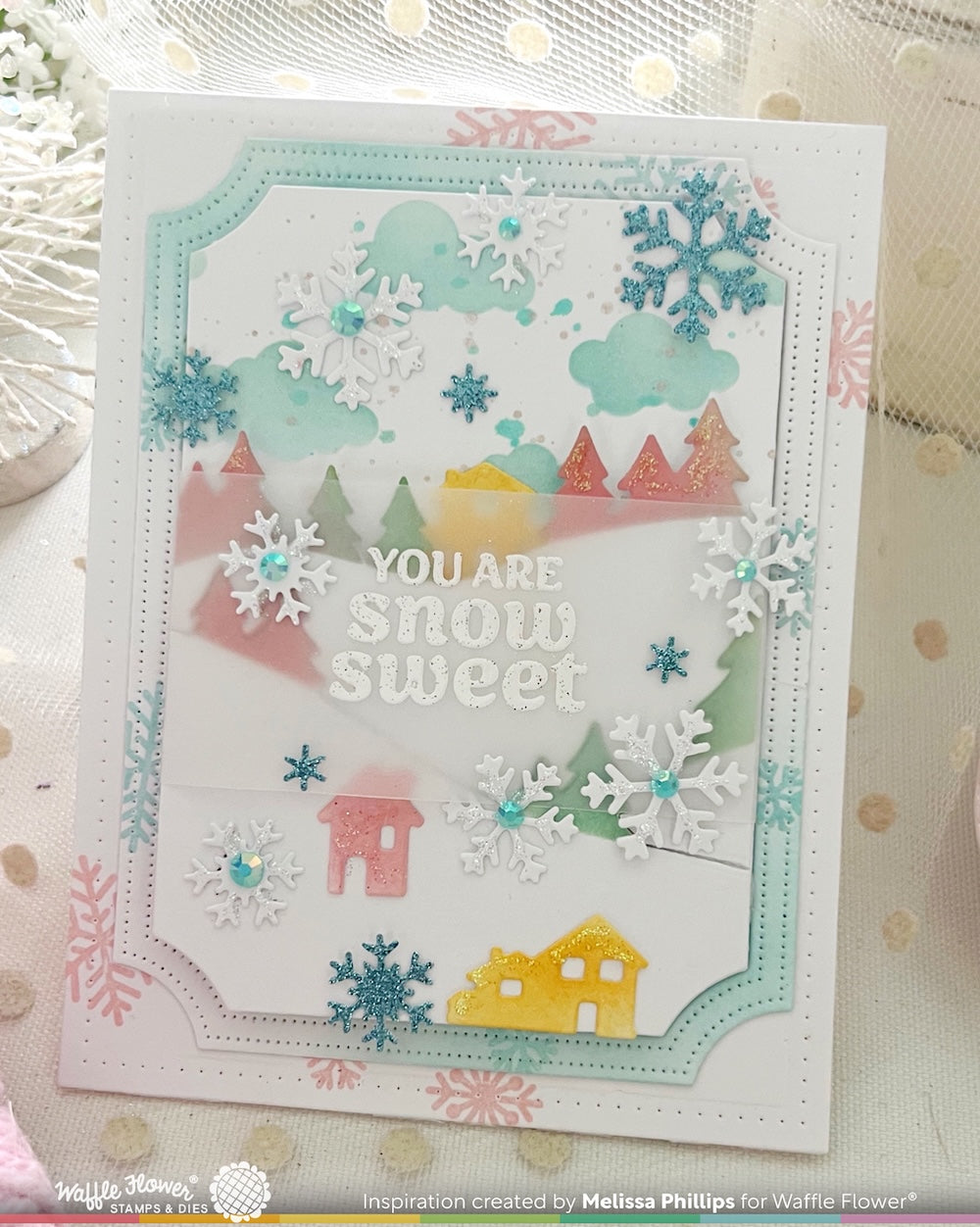 This die set cuts three wavy hill lines with trees and is slightly smaller than 4.25” wide to fit a US - A2 panel. Use it with the Snowy Hills Stencil to add colour, keep the pieces together for a full background, trim them apart to create your own scene, or pair with the Add-on Die for more options.