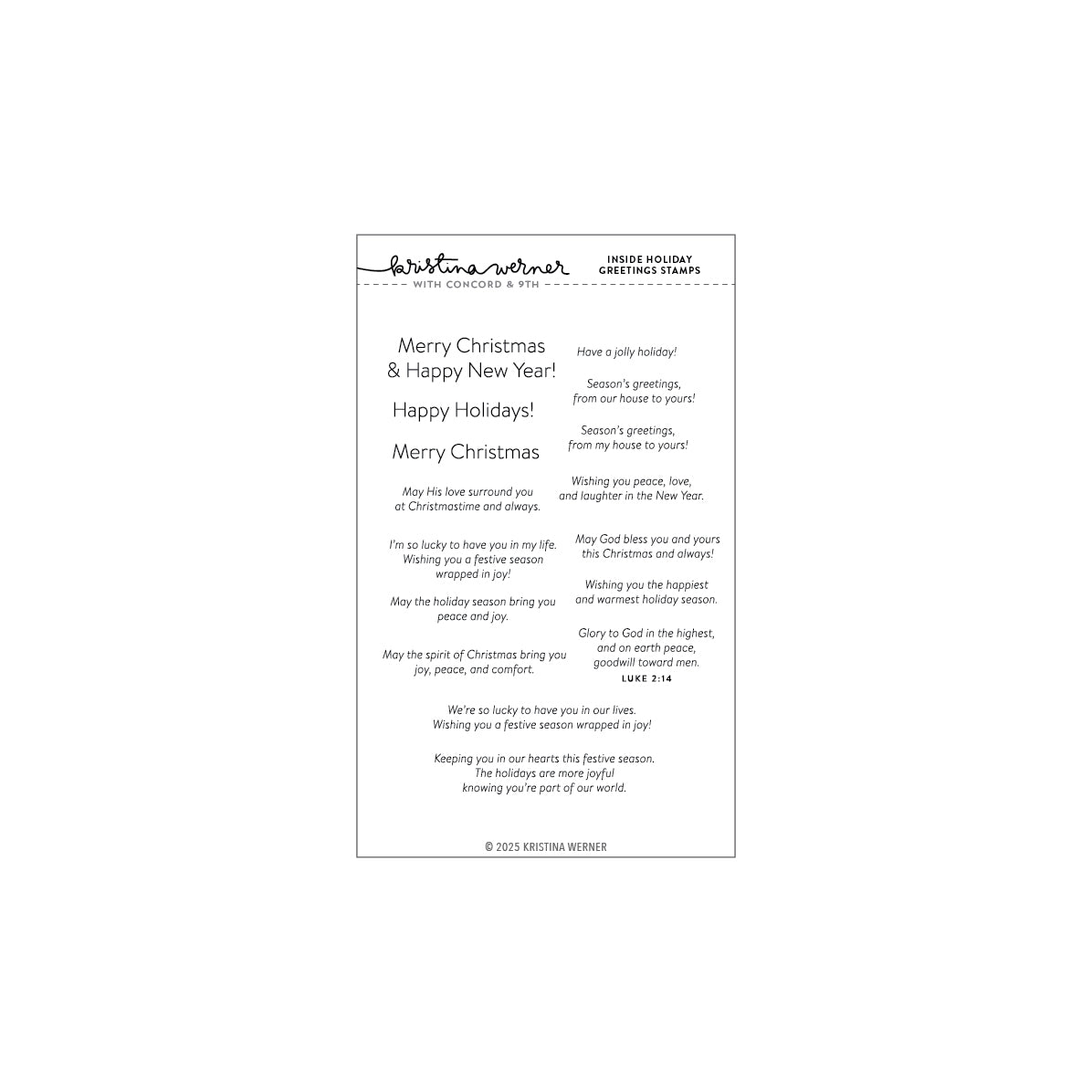 The Inside Holiday Greetings Stamp Set is filled with heartfelt sentiments perfect for the inside of your holiday cards. From faith based messages to cheerful well wishes, this set has the right words to add warmth and meaning to every festive creation.