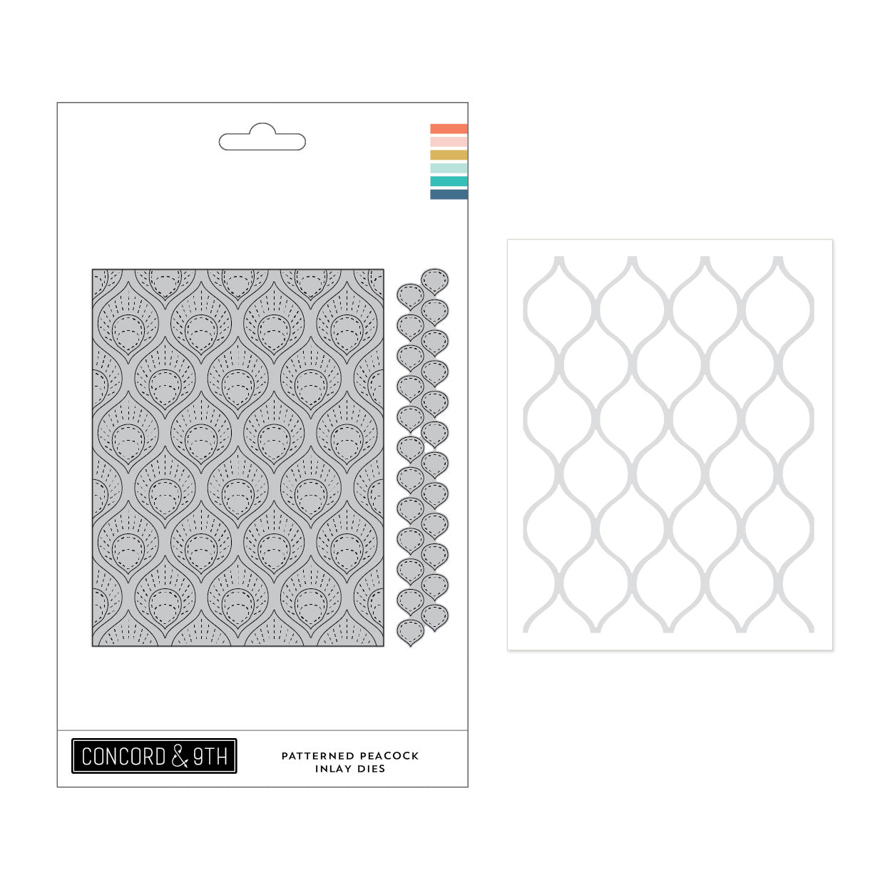 This bundle contains the patterned peacock embossing folder and Inlay die.