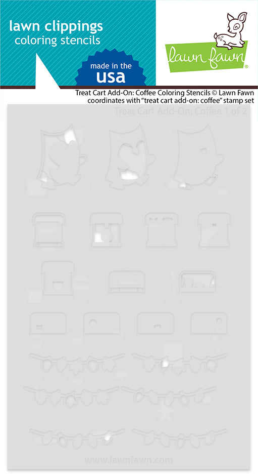 This 2-piece stencil set is designed to coordinate with Treat Cart Add-On Coffee and Treat Cart Add-On Coffee Lawn Cuts.