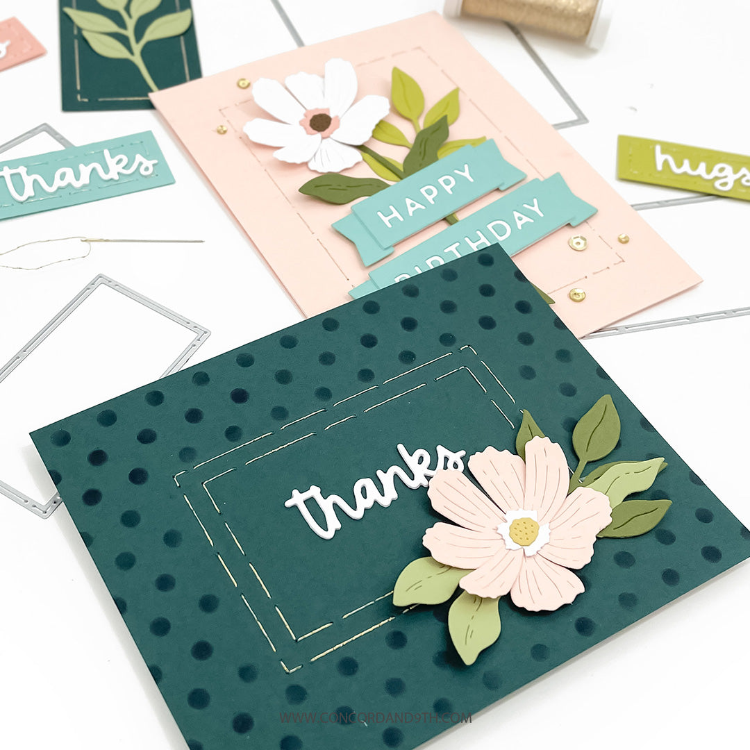 Surround your design in sweetly stitched details with the Rectangle Frame Piercing Dies! This set contains 9 rectangle piercing dies ranging in size from approximately 5/16" x 1-3/4" to 3-3/4" x 5". Each of them adds an easy-to-follow stitching guide to your card front so you can add stitched detail to any design.