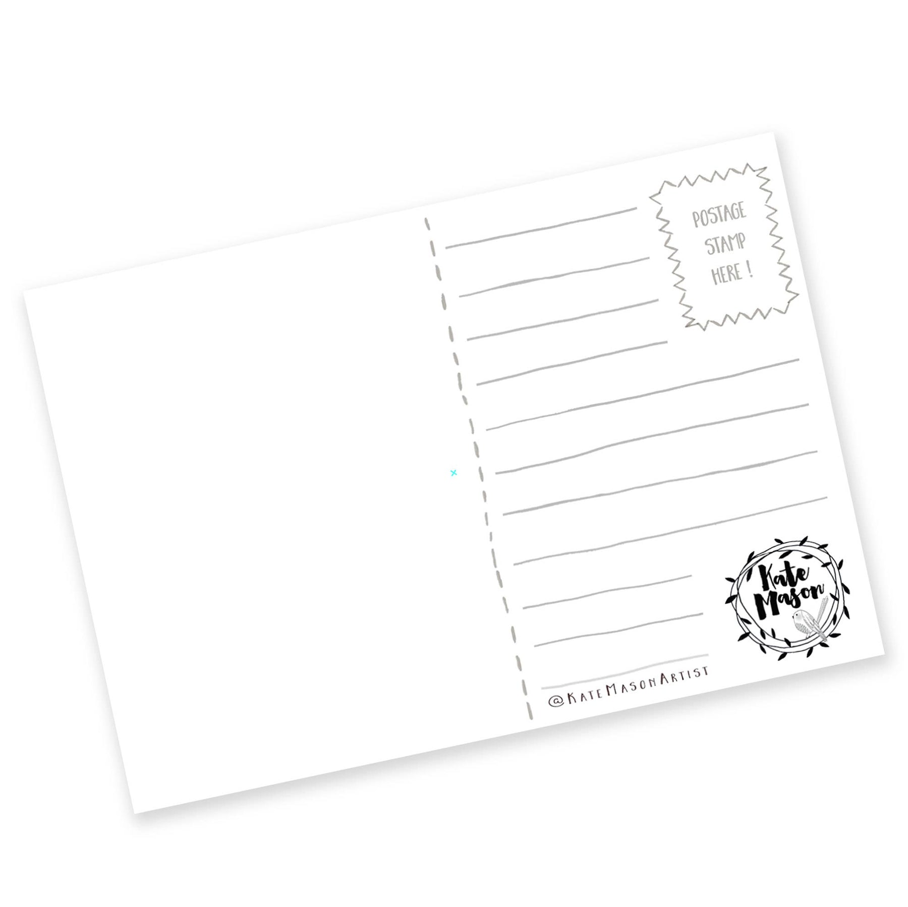 Send a little piece of art with one of Kate Mason's beautiful postcards, each C6 postcard features one of her charming designs printed on sturdy 300gsm white card. The back has space for your personal message, address, and stamp, with the artist’s logo neatly displayed. Perfect for sharing your thoughts, sending happy mail, or collecting as tiny pieces of Kate’s creative world.