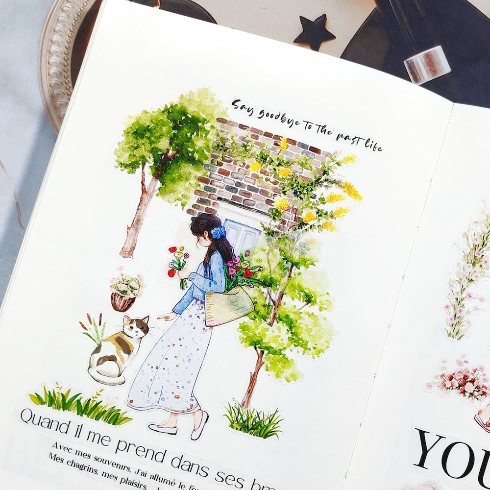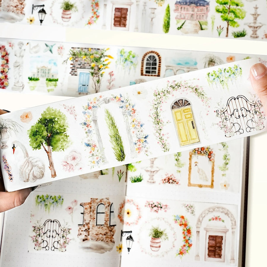 Step into a sun dappled afternoon in a quiet French courtyard. This pre-cut washi/PET tape captures delicate scenes of everyday charm with stone balconies, ivy-covered walls, blooming planters, and open shutters. Each piece is like a miniature escape, inviting you to pause, breathe, and add a touch of European elegance to your journal or planner.