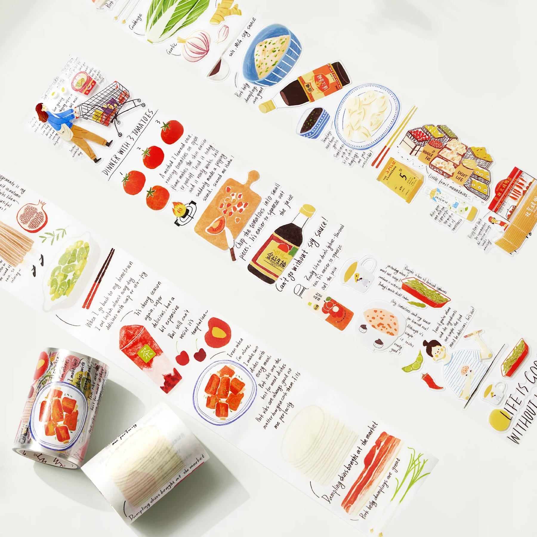 Introducing the Pre-cut Dinner Time Wide Washi/PET Tape! Filled with delightful illustrations of various foods and recipes, this tape is perfect for food lovers and home chefs alike. Each piece features charming depictions of dinner scenes, from hearty meals to sweet desserts, adding a delicious touch to your planners, recipe books, and craft projects. Spice up your creations with a taste of culinary joy!.