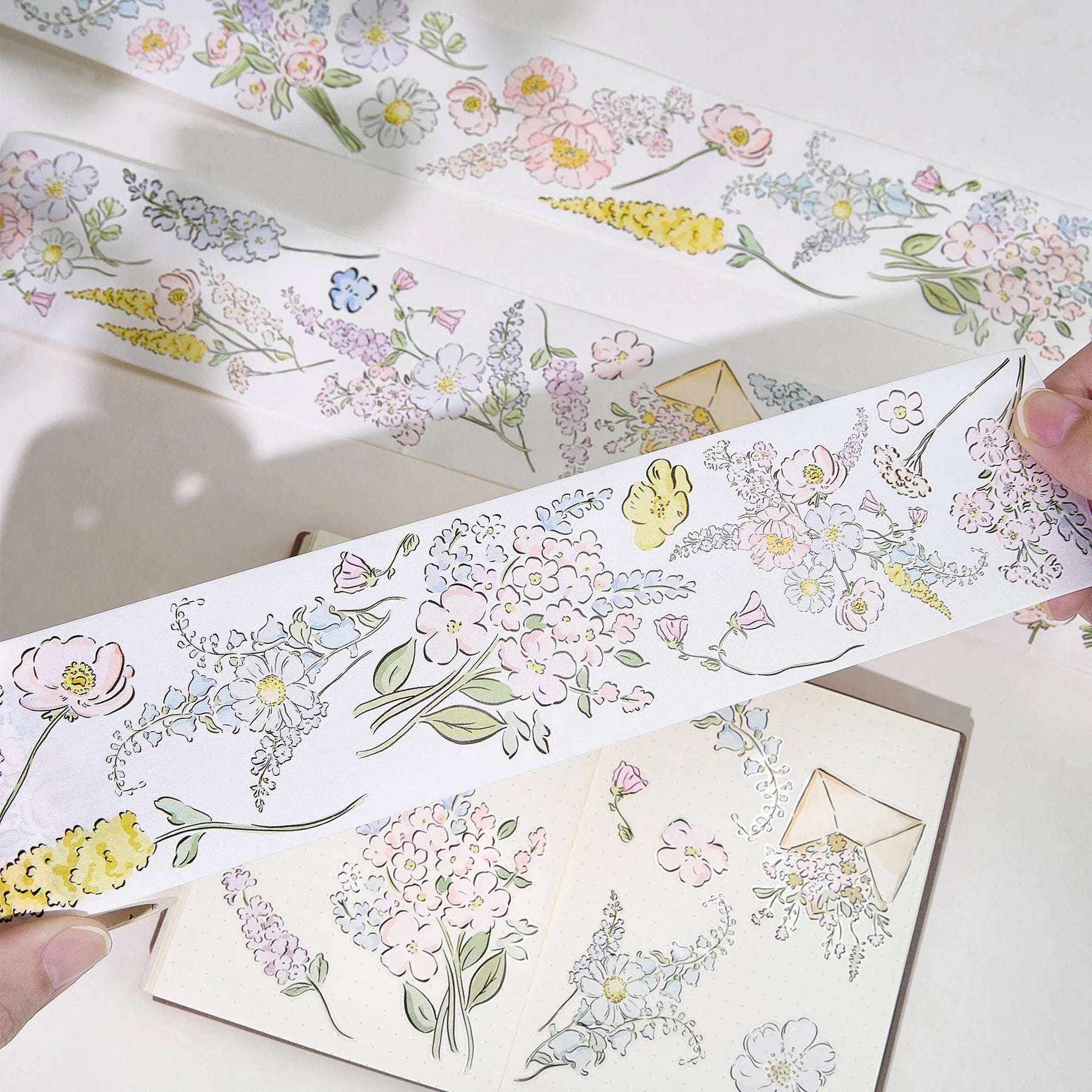 This isn't your typical flower tape. We’ve combined dreamy watercolour fills, think soft pinks, mint greens, and butter yellows with crisp black ink outlines. It creates a modern, illustrative look that pops right off the page. It feels like a fresh breeze for your planner.